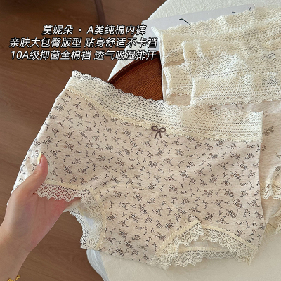 莫妮朵25新款蕾丝花边纯棉平角裤39.9元天猫49.9元