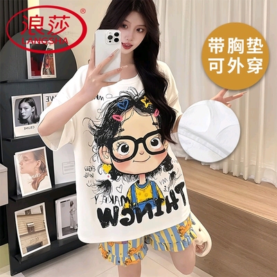 浪莎纯棉带胸垫睡衣女夏季两件套39.9元淘宝49.9元
