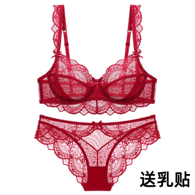 新品本命年蕾丝超薄款性感内衣套装女士大胸显小D杯E杯大码文胸罩49元淘宝59元