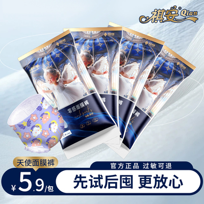 祺安天使拉拉裤宝宝便携纸尿裤超薄透气小花裤旅行试用装面膜裤5.9元天猫7.9元