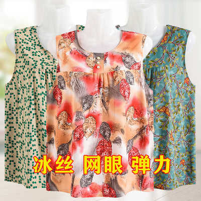 夏季中老年人无袖背心妈妈装女士大码宽松老太太遮肚无袖上衣汗衫16.5元淘宝19.5元