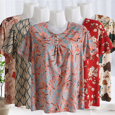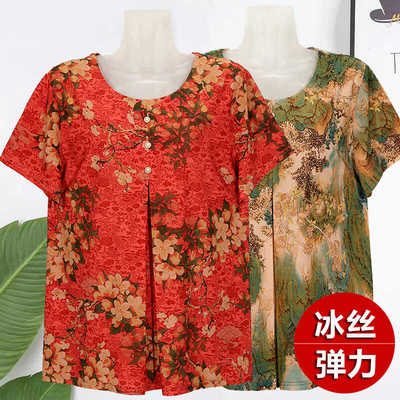 妈妈夏装冰丝短袖t恤中老年大码19.9元淘宝21.9元
