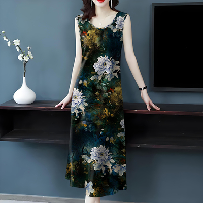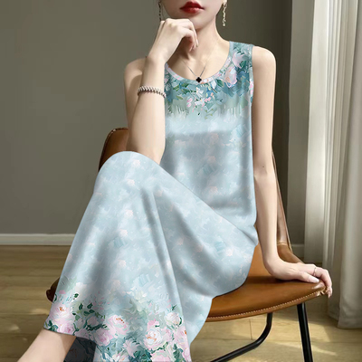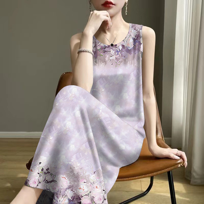2025夏新款中老年修身减龄遮肚妈妈装印花背心吊带中长款连衣裙女1.9元淘宝12.9元