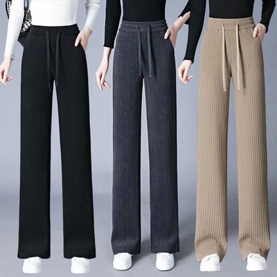 2025秋冬新女裤妈妈直筒毛呢休闲长裤高腰松紧加绒加厚中老年阔腿18.9元淘宝19.9元