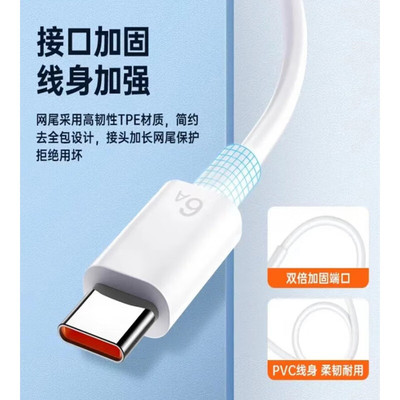 HXJN适用type-c数据线6A超级快充安卓手机tpyec充电线p40mate50安卓nova7/8新款快充手机100W闪充电器安卓66W8.6元天猫23.6元