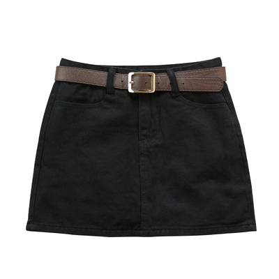 黑色牛仔短裙女中腰春夏新款简约百搭修身显瘦半身裙带内衬防走光