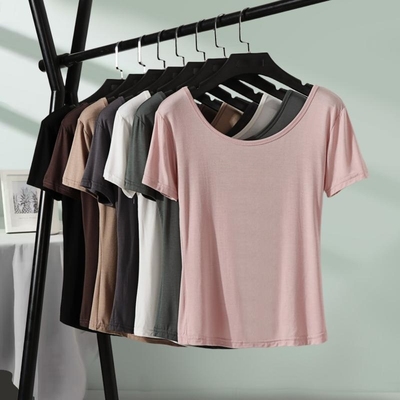 莫代尔露背薄款内搭打底衫女夏季短款美背短袖U领T恤纯色修身上衣
