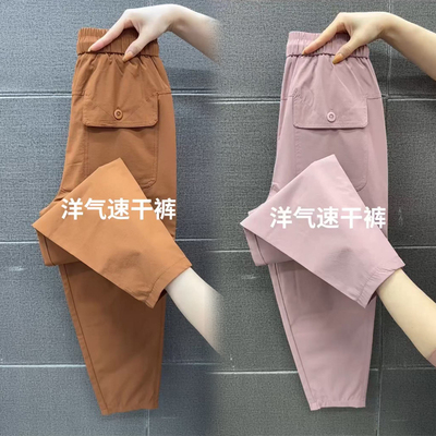 48¥ HU108 jjCs48q2VQe¥ https://m.tb.cn/h.hsFj6OI 冰丝速干裤女夏季新款高腰显瘦小脚哈伦裤宽松洋气九分休闲女裤子