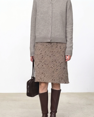 CHIC 重工斜裁小毛球裙_意大利立体彩点羊毛呢 复古毛边A摆中裙