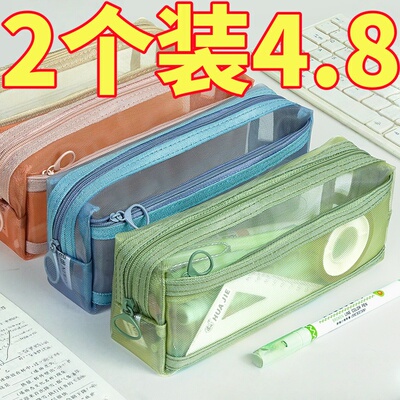 莫兰迪笔袋ins风简约透明网纱2.01元淘宝3.01元