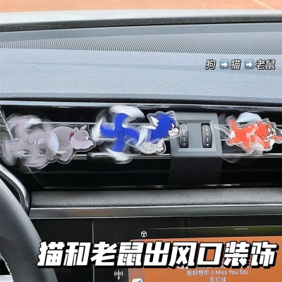 汽车出风口汤姆杰瑞摆件卡通个性旋转风扇装饰4.8元淘宝5.8元