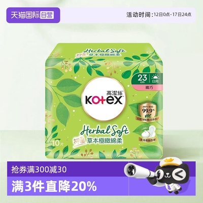 【自营】高洁丝小绿袋草本抑菌纤巧绵柔卫生巾日用进口姨妈巾港版9元天猫15元